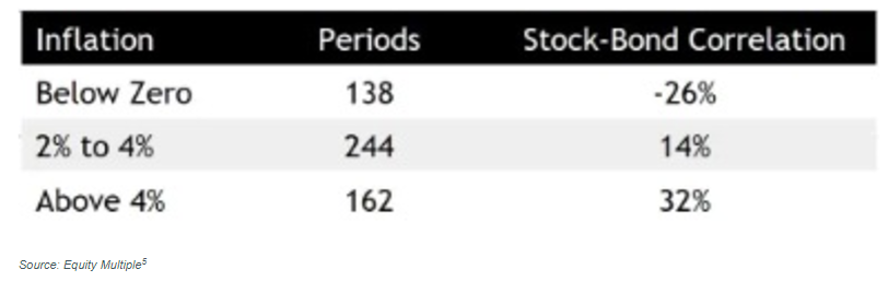 Recent history shows that the 60/40 portfolio can be very sensitive to the change in correlation between stocks and bonds. For example, the chart below shows how changes in the stock/bond correlation are influenced by different inflation regimes. Meaning, historical correlations may not be as stable as they appeared. Consequently, a 60/40 portfolio might not be your entire portfolio, but rather, a core position with supplemental assets to help reap further diversification benefits. In that sense, perhaps the 60/40 portfolio didn’t die, but expanded upon its core tenant of diversification.
