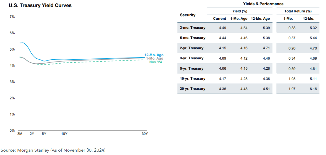 The U.S. Treasury yield curve was deeply inverted at the start of 2024 with short-term rates exceeding long-term rates. However, as the year progressed and towards the year end, the yield curve began to normalize slightly as long-term yields increased relative to short-term yields. This shift reflected market expectations for a more supportive monetary policy environment and reduced recession concerns.